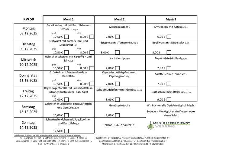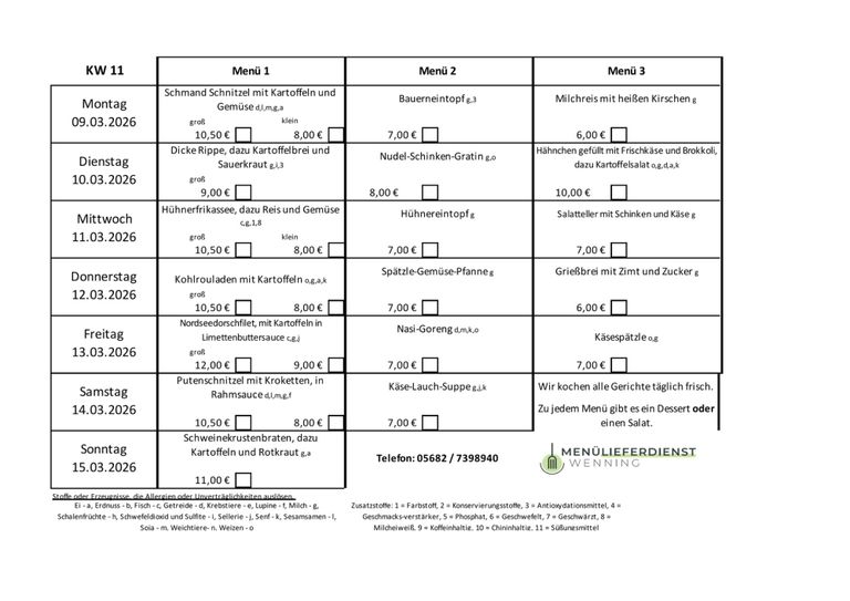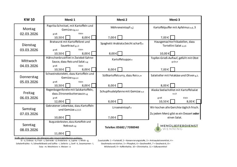 - Fleischgerichte (Schwein, Rind, Huhn, Pute)