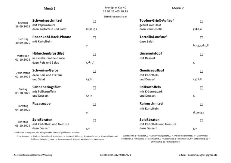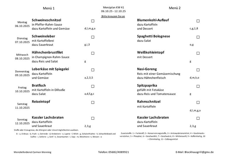 - Gemüsegerichte (Schichtkohl, Aufläufe etc.)