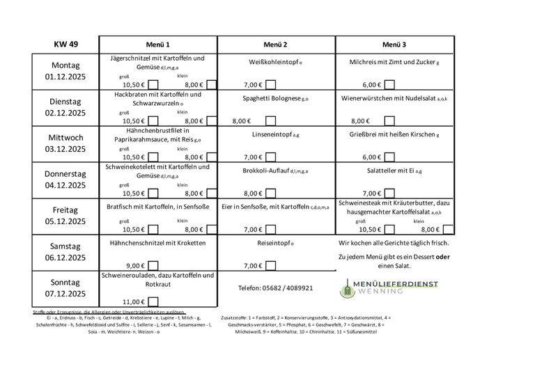 - Süsspeisen (Milchreis, Grießbrei, Kaiserschmarrn)